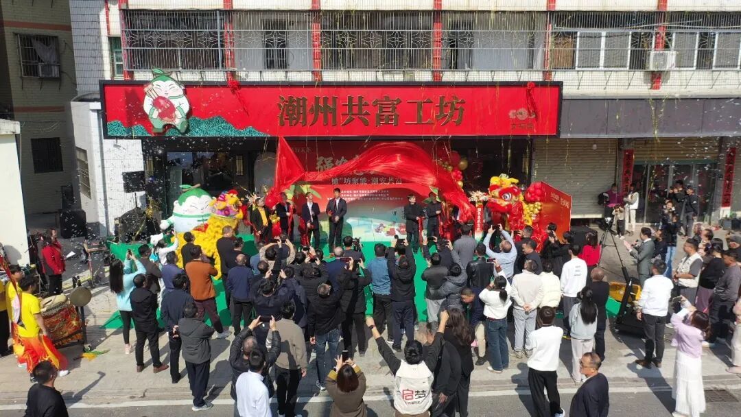 活动中,潮州市委宣传部副部长蔡成雄,区委副书记、区“百千万工程”指挥办主任周钦泉,区委副书记、罗湖区对口帮扶协作潮安区工作队队长孙祜、副区长谢广歆等共同为文祠镇“共富工坊”揭牌。